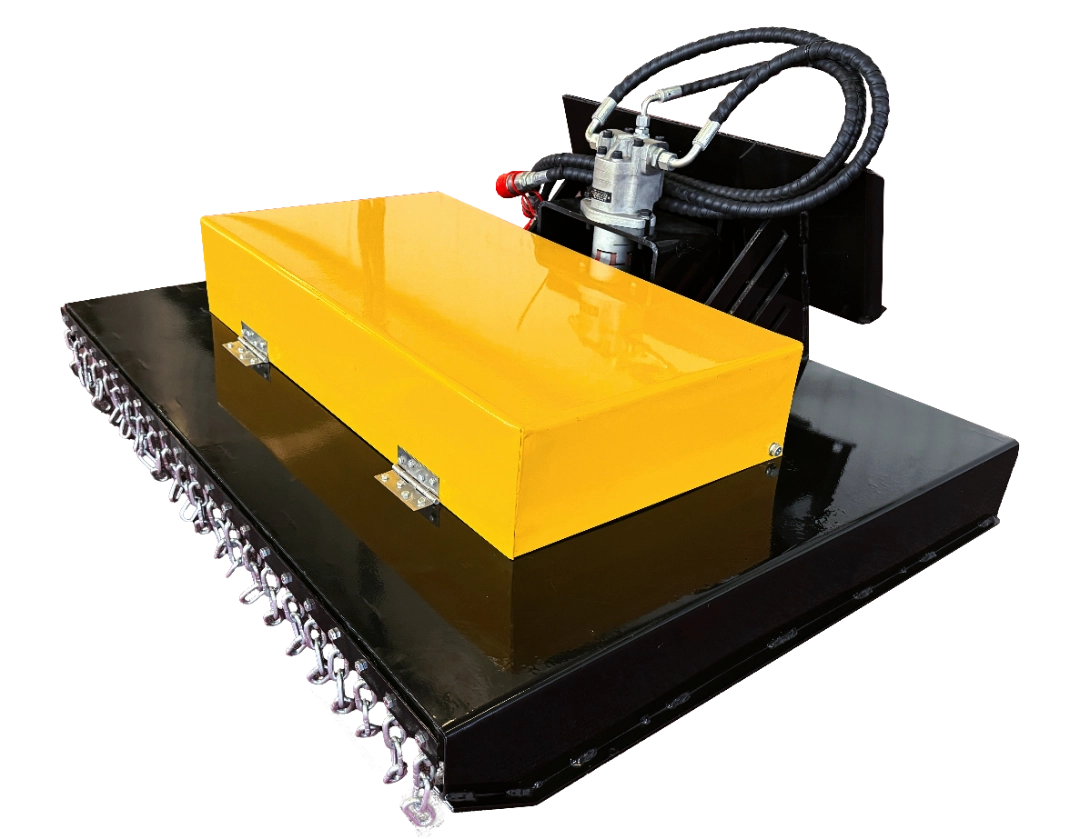 Este accesorio transforma tu minicargadora en una desmalezadora de alto rendimiento, pensada para su aplicación en grandes terrenos, con un ancho de corte efectivo de 1,07 m. Sus cuchillas pivotantes, son muy seguras frente a objetos contundentes, como ser piedras, madera, metal y otros posibles obstáculos que se presenten, resistiendo al impacto.